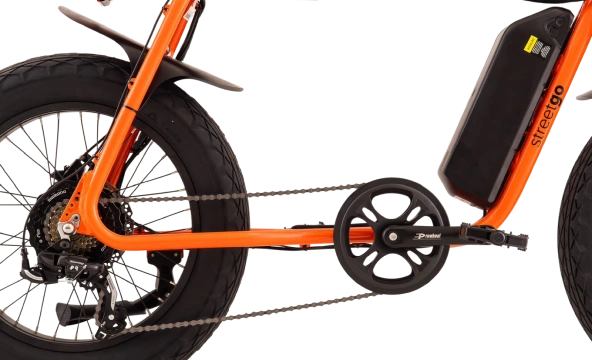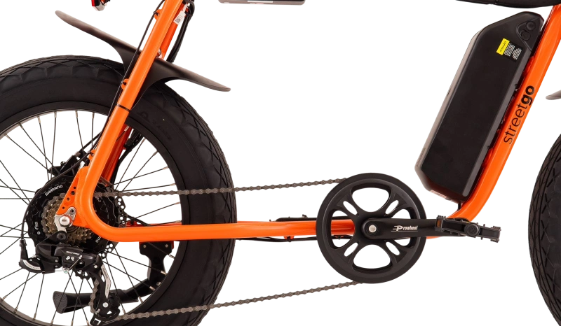 A bike elétrica StreetGo S12 combina pedal e potência com um motor de 750W, bateria de 48V 15Ah (Samsung ou LG) e autonomia de 20 a 60 km. Alcança até 32 km/h e conta com ciclocomputador LCD com 5 níveis de assistência, freios hidráulicos Shimano MT200 e suspensão dianteira Double Crown para conforto e segurança.